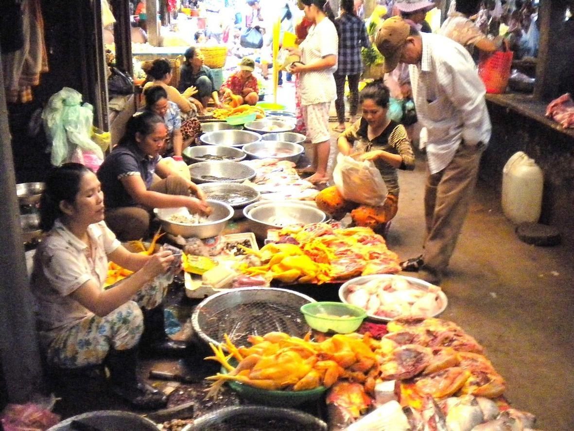 Nous sommes arrivés dans le Sud du Cambodge, à Kampot et ce matin, nous avons découvert l'incroyable marché de cette petite ville! Un mélange (odorant) de poissons et de volailles vivantes, de gargotes fumantes, de fruits et légumes frais, de marchands d'or et de vendeuses de vêtements.